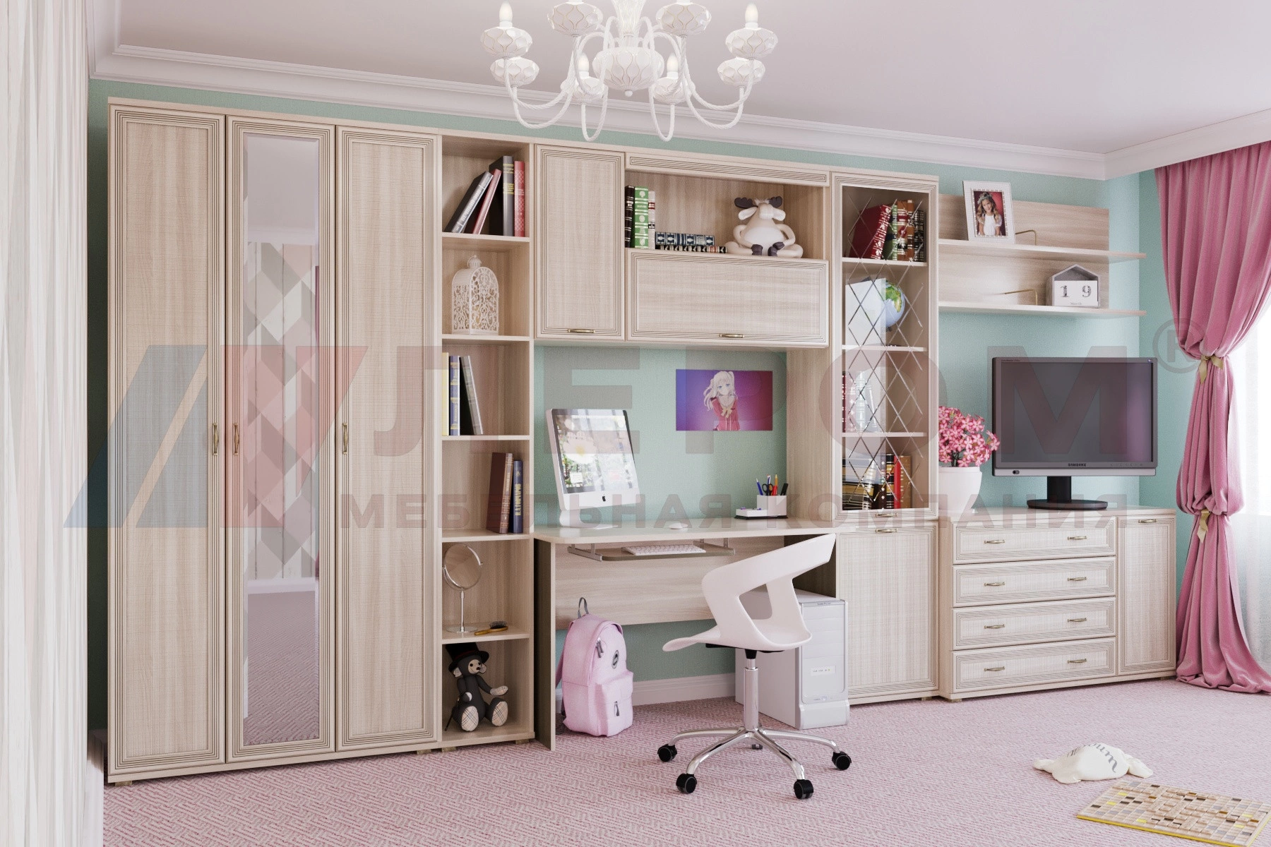 Применяемые материалы: корпус ЛДСП, фасад МДФ, стекло, зеркало.